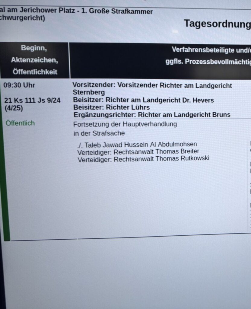 Am Dienstag, den 4. November 2025, beginnt vor dem Landgericht Magdeburg der Prozess gegen Taleb Al Abdulmohsen mit dem Aktenzeichen : 21 Ks 4/25